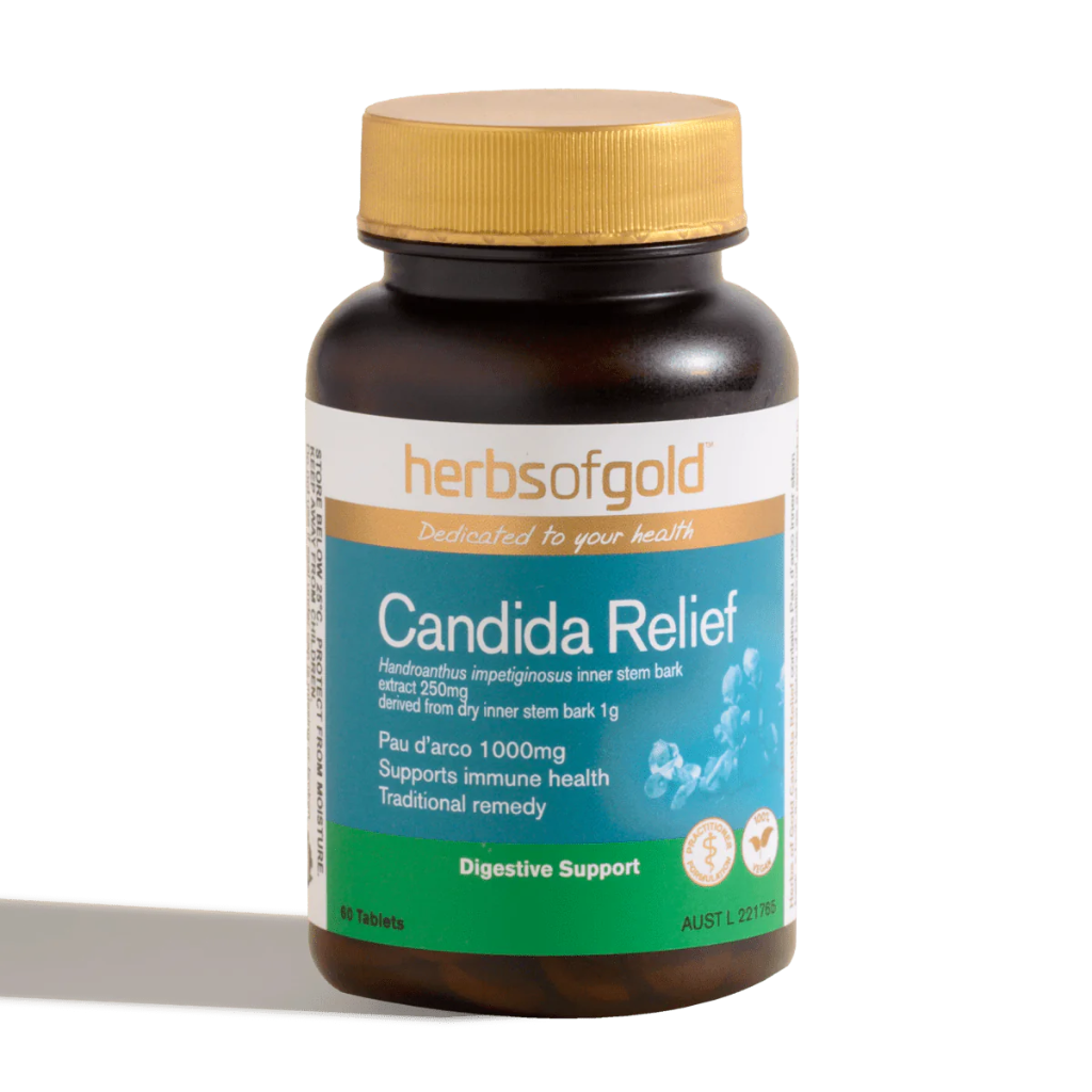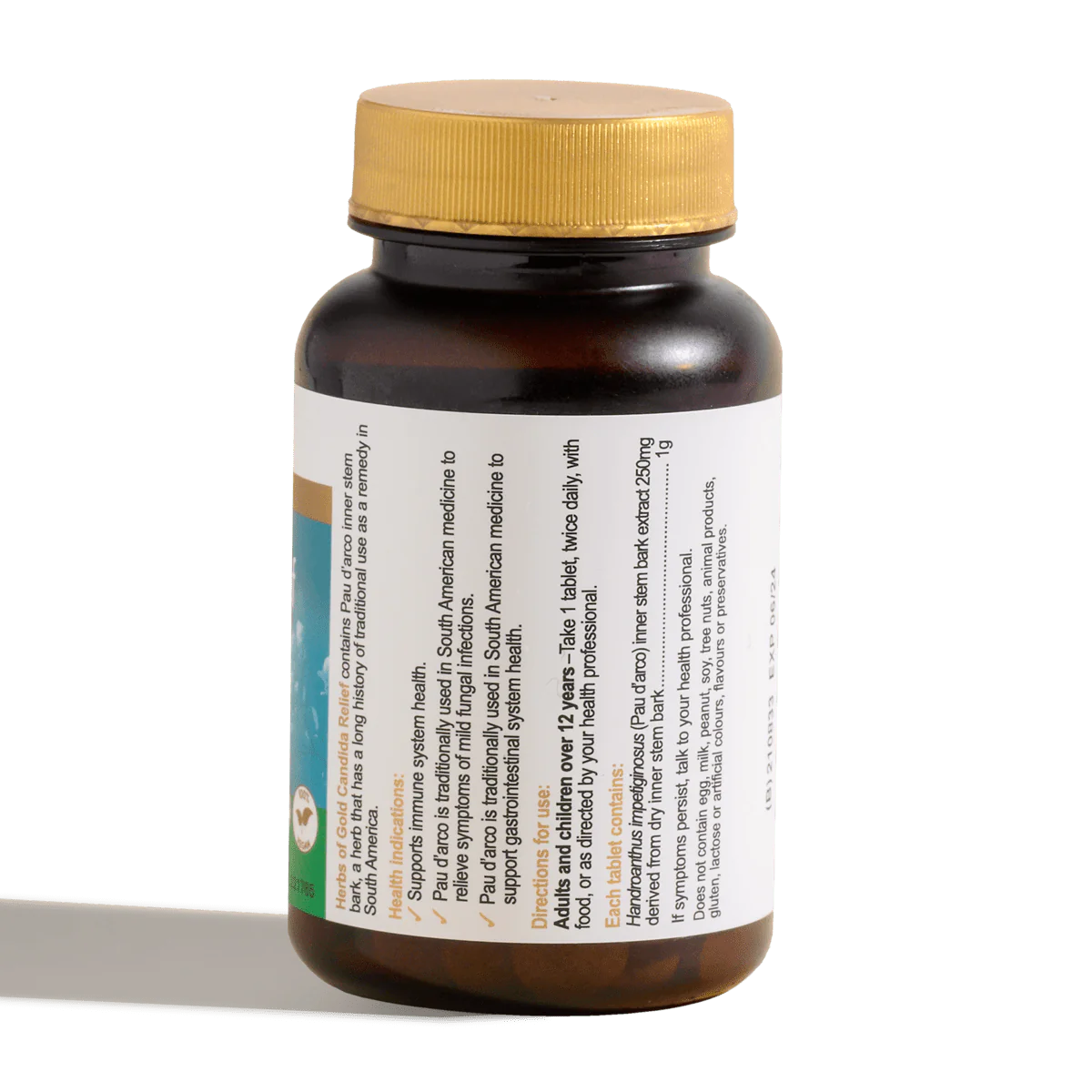 Herbs of Gold Candida Relief 含有紫薇树胶,传统上在南美医学中用于缓解轻度真菌感染的症状。