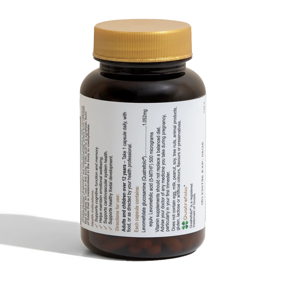 - 活性叶酸 500 支持大脑健康、认知功能和记忆力。