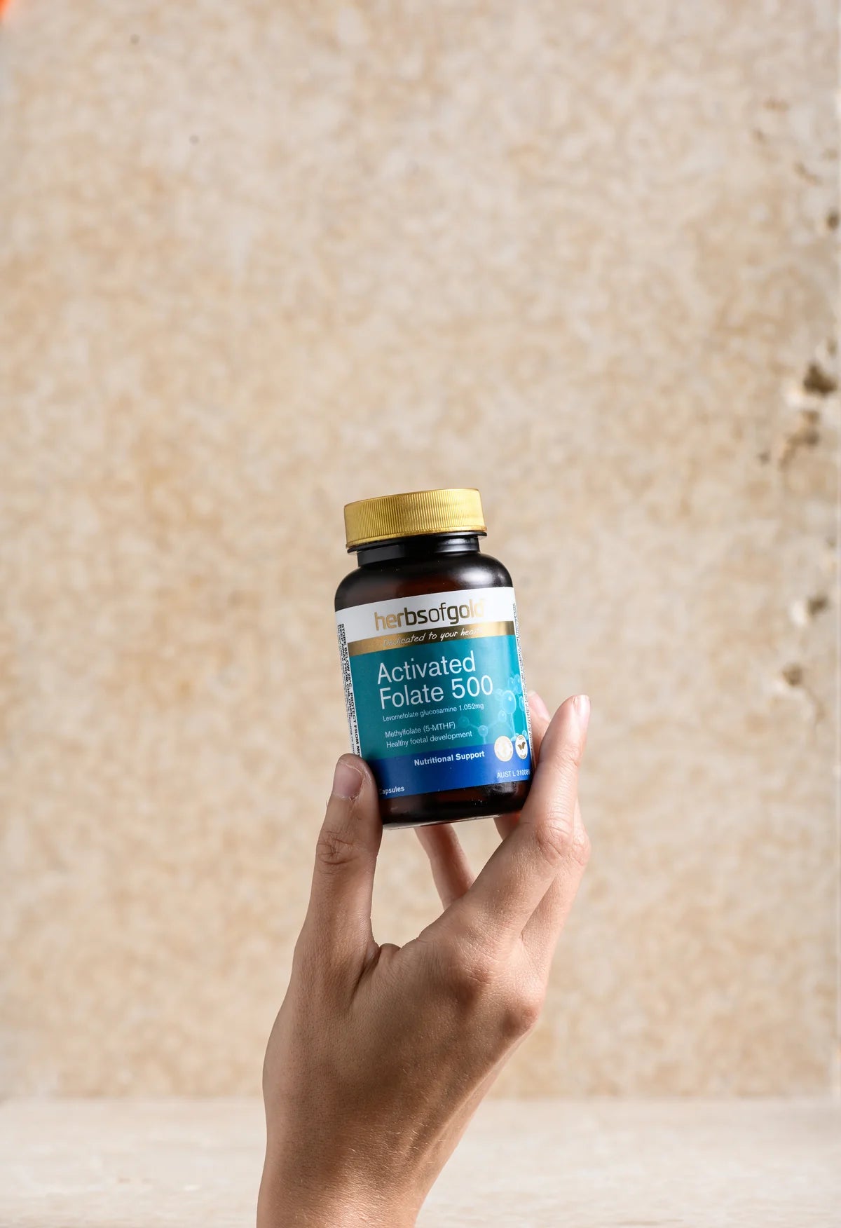 Herbs of Gold Activated Folate 500 含有甲基叶酸 (5-MTHF),即叶酸的代谢活性形式。