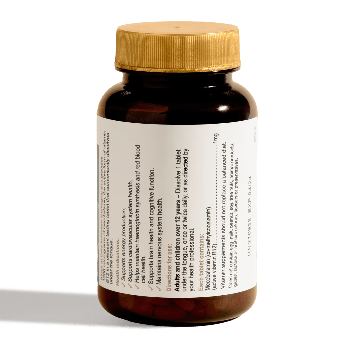 - 活性舌下维生素 B12 支持神经系统健康、认知功能和大脑健康。