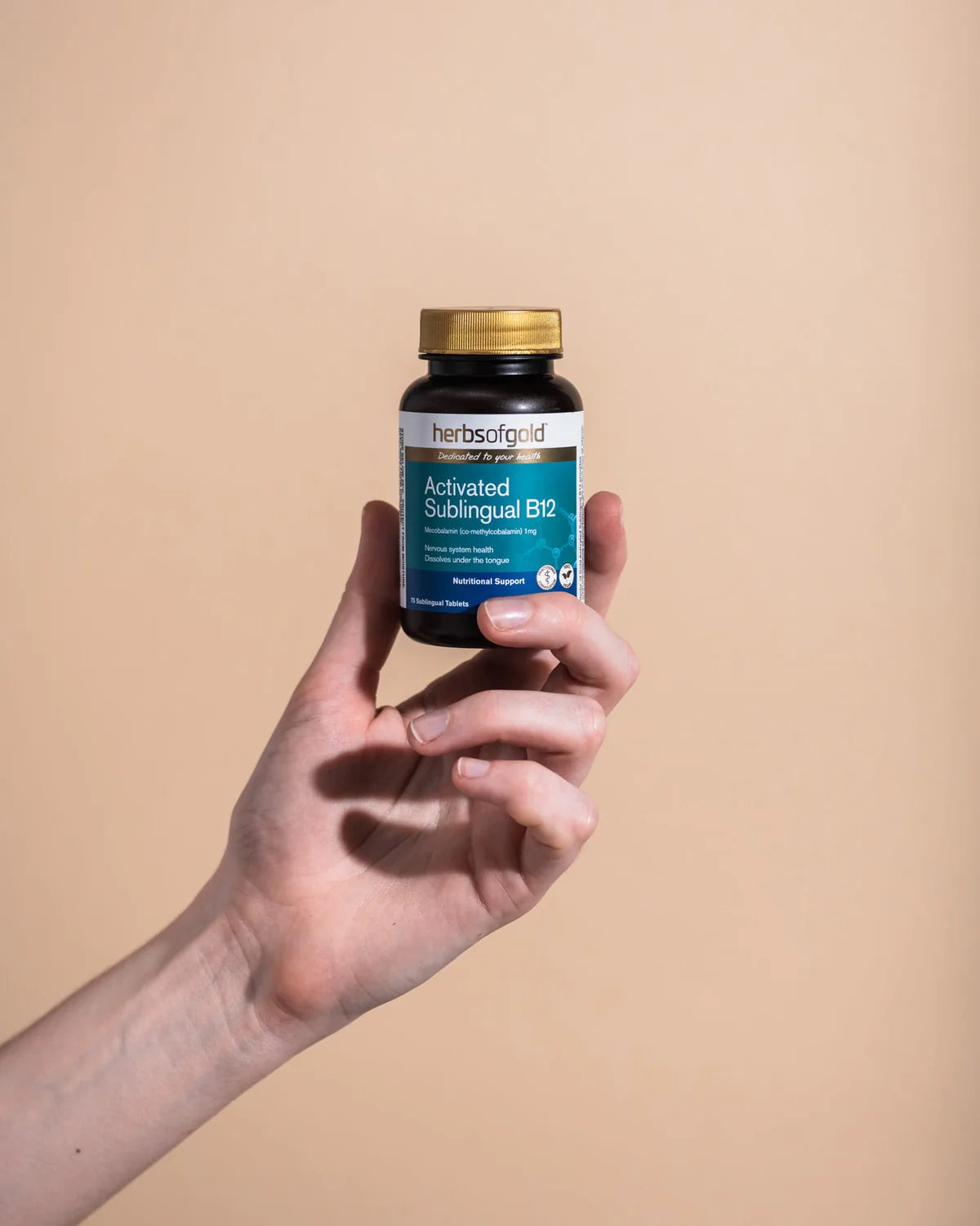 Herbs of Gold Activated Sublingual B12 含有 1000 微克的甲钴胺(维生素 B12 的活性形式),呈味道宜人的片剂,可方便地溶解在舌下。