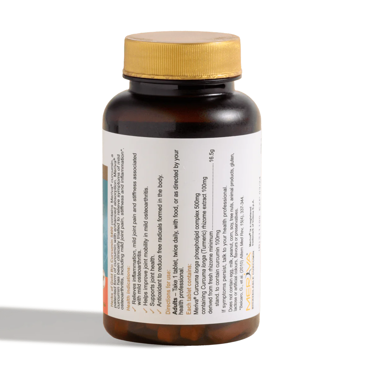 Herbs of Gold 生物姜黄素 5400 含有 Meriva ® ,一种经过临床试验*的姜黄素,可以缓解炎症。