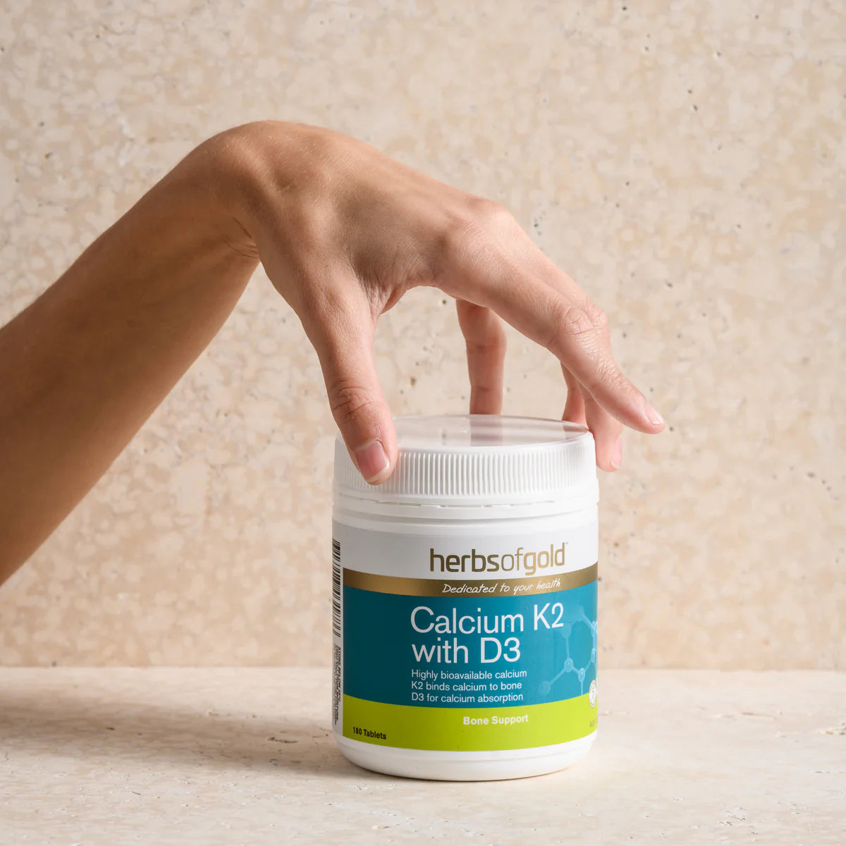 含 D3 的 Herbs of Gold Calcium K2 是一种创新的钙补充剂,特别添加了甲萘醌 7(维生素 K2)和维生素 D3,可实现最佳骨骼健康。