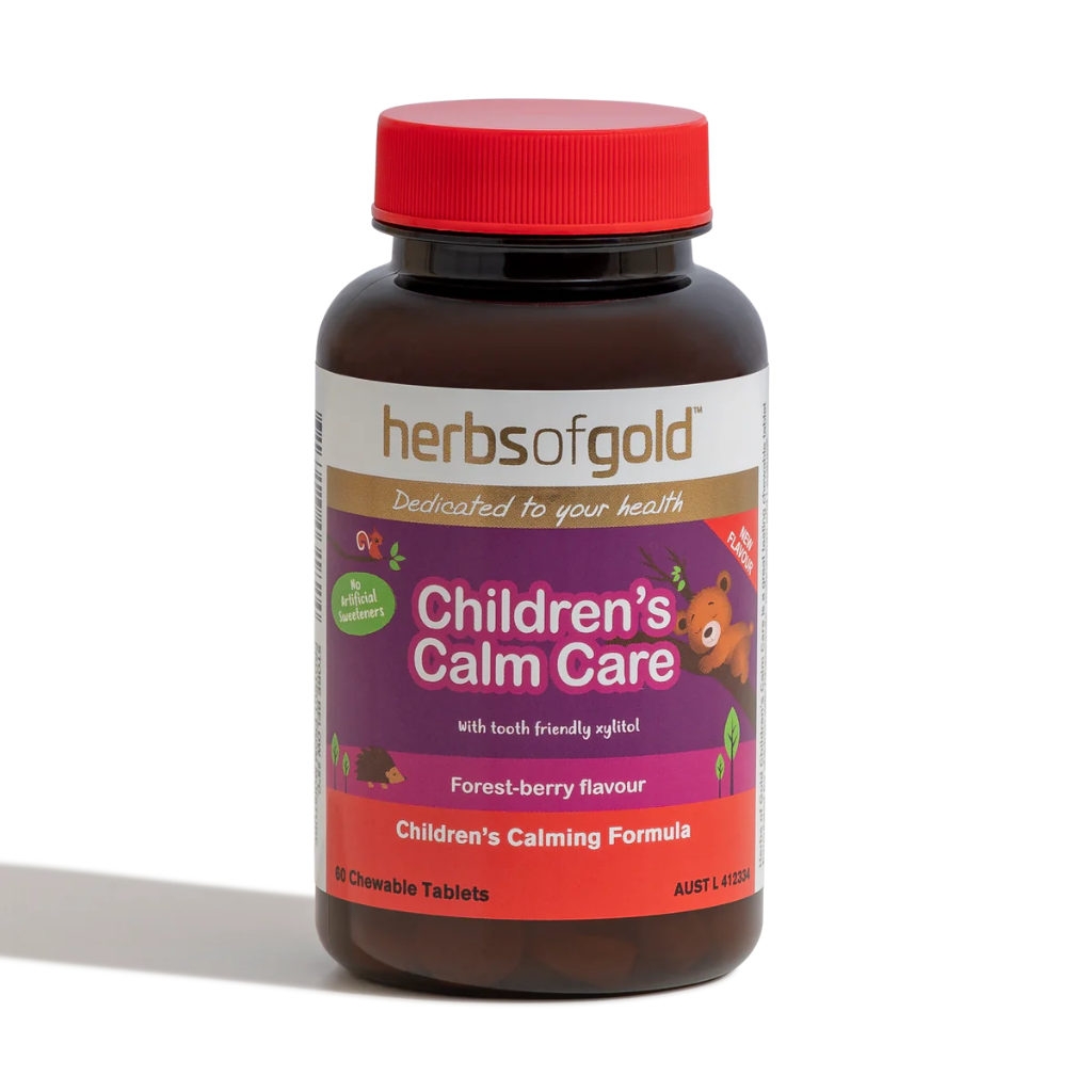 Herbs of Gold 儿童镇静护理是一种美味的森林浆果味咀嚼片,含有洋甘菊,这是一种传统上在西方草药中用作镇静剂来安抚儿童的草药。
