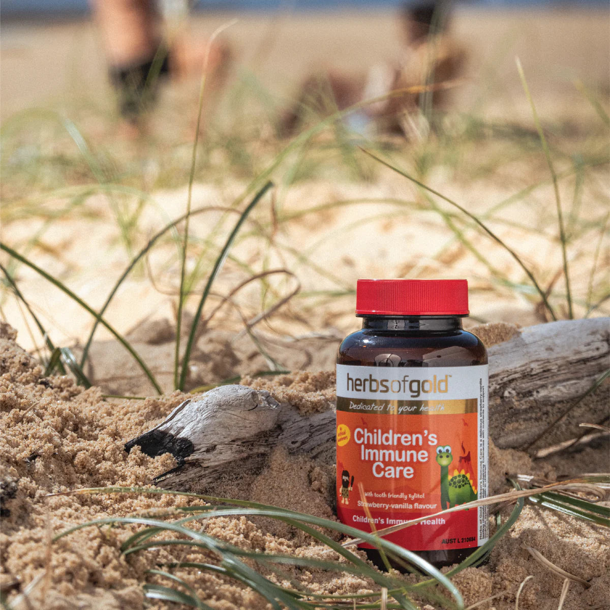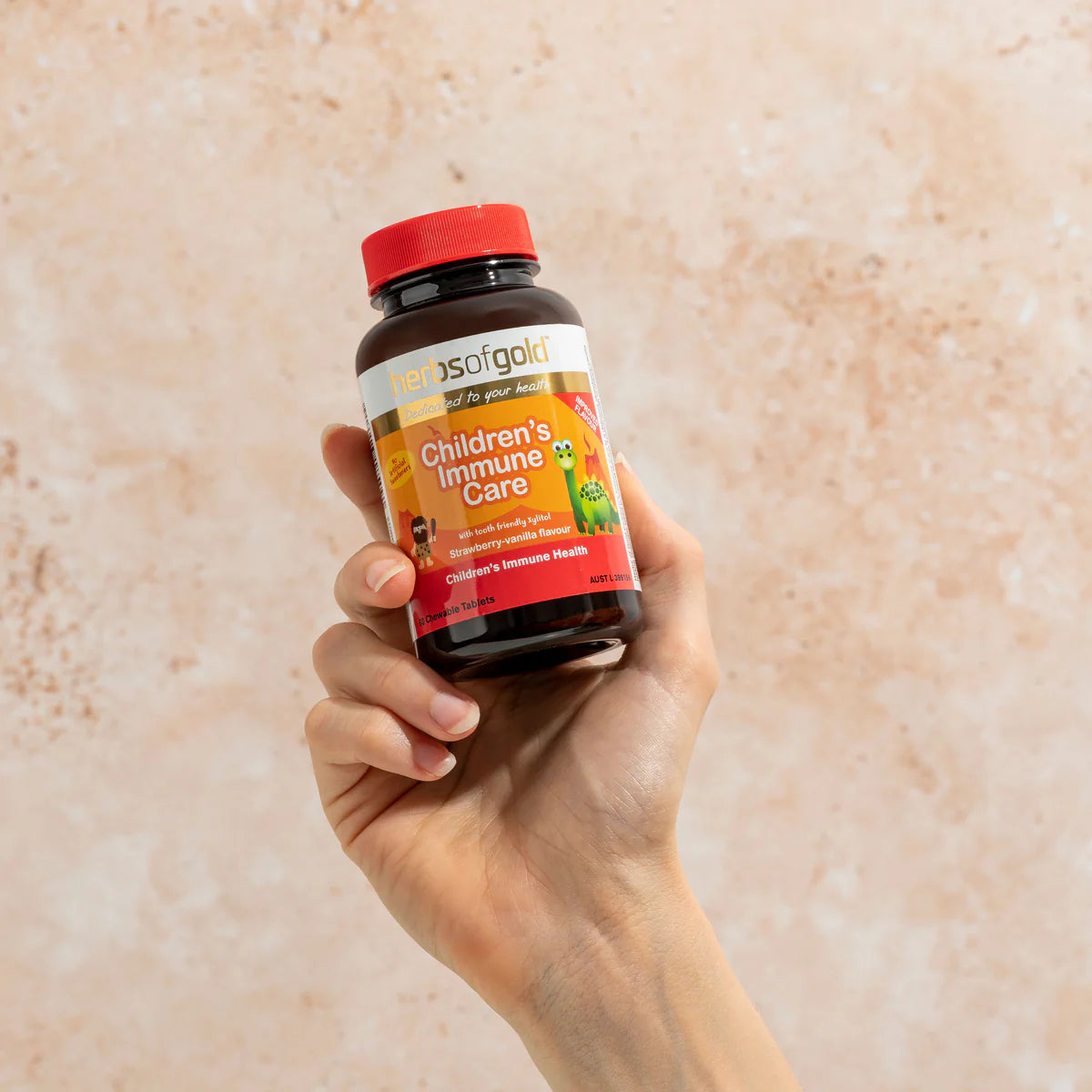 - 儿童免疫护理是一种美味的草莓香草味咀嚼片,旨在支持免疫系统健康,抵抗儿童疾病。