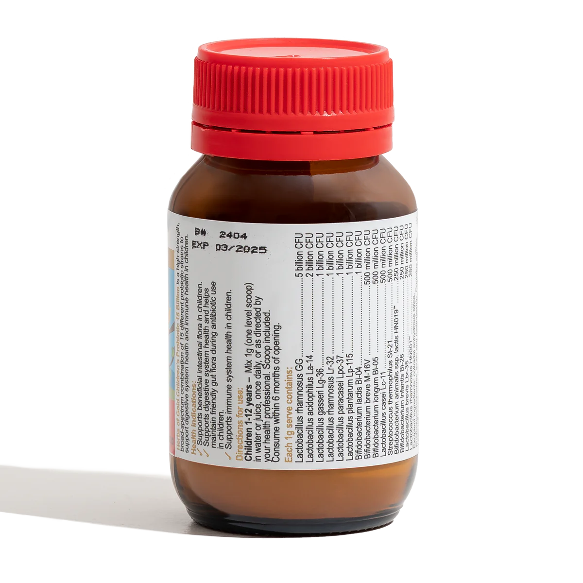 - 儿童益生菌 150 亿支持免疫系统健康,并有助于在使用抗生素期间维持有益的肠道菌群。