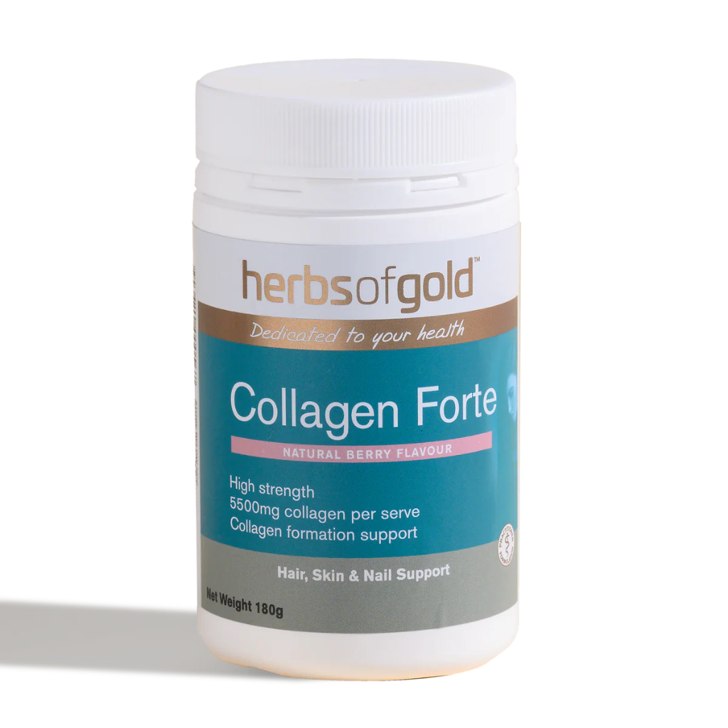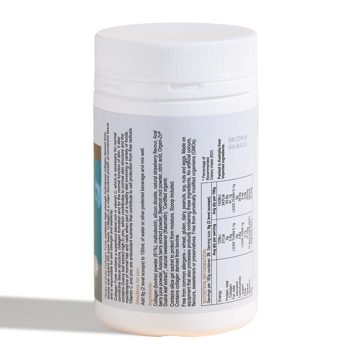 Herbs of Gold Collagen Forte 提供高强度、生物活性的牛胶原蛋白,并结合富含维生素 C 等营养成分的特殊超级食品混合物,以支持健康的胶原蛋白形成和结缔组织结构。