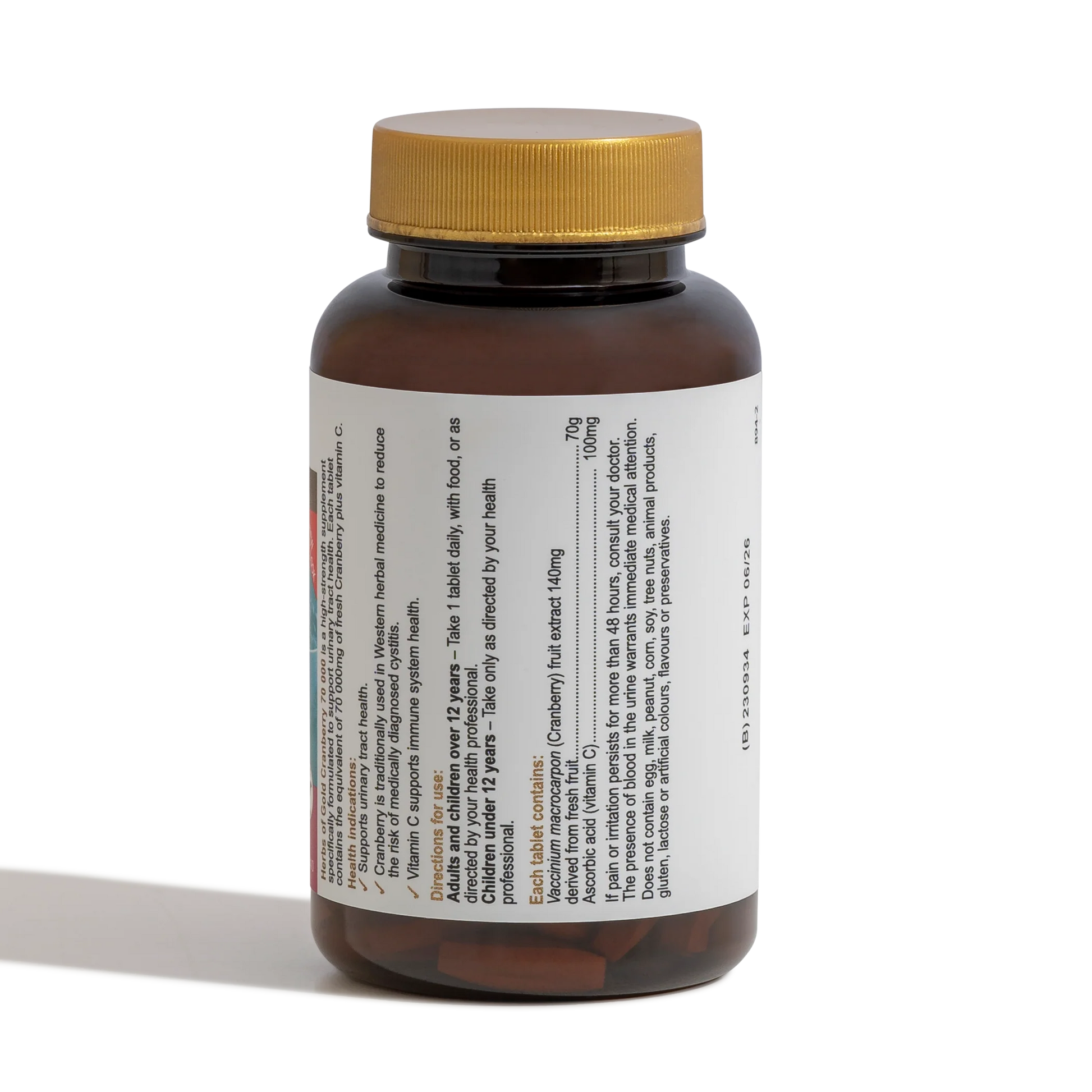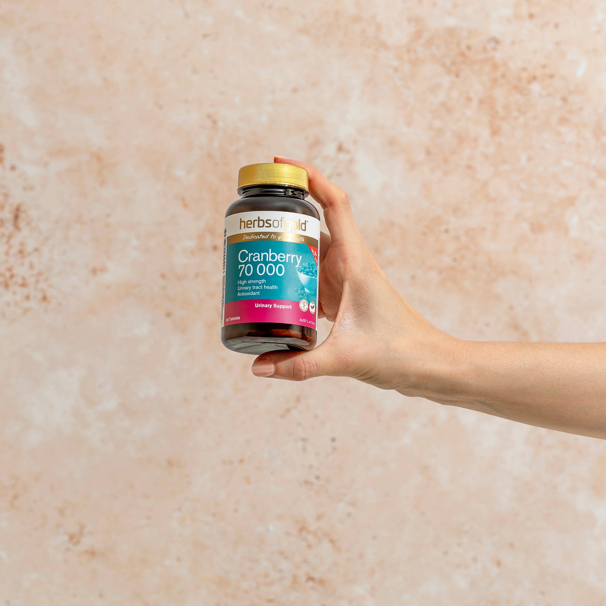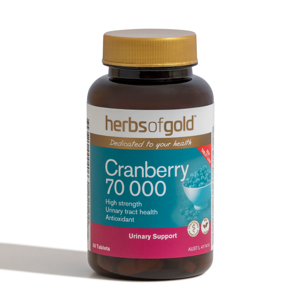 Herbs of Gold Cranberry 70 000 是一种高强度补充剂,专门配制用于支持泌尿道健康。
