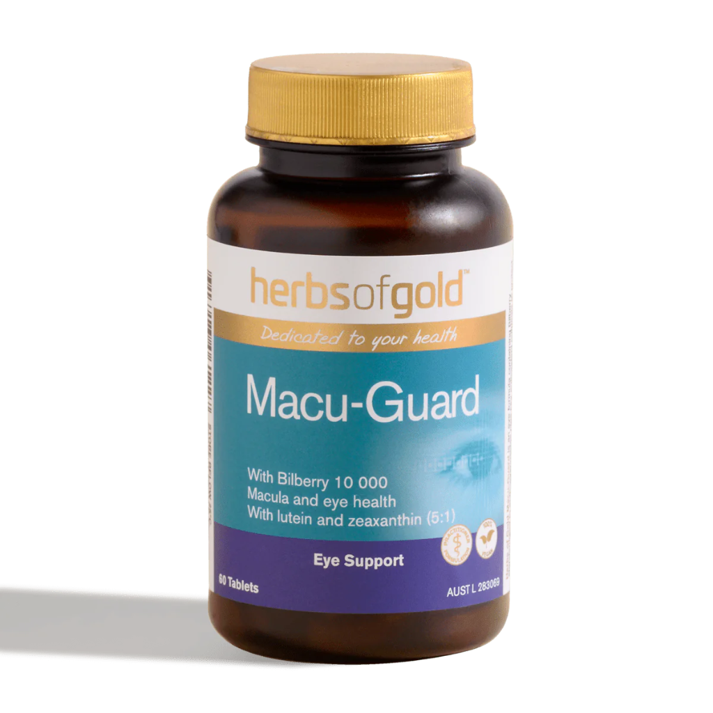 Herbs of Gold Macu-Guard 是一种草药和营养素的综合混合物,有助于维护眼睛健康。