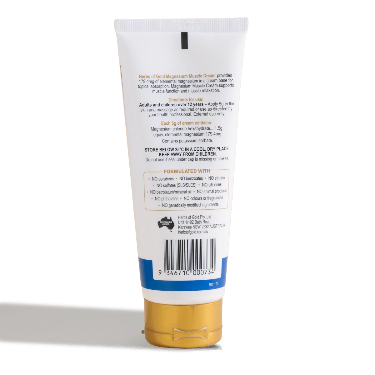 Herbs of Gold 镁肌肉霜提供高强度镁,可用于局部应用以支持肌肉健康。