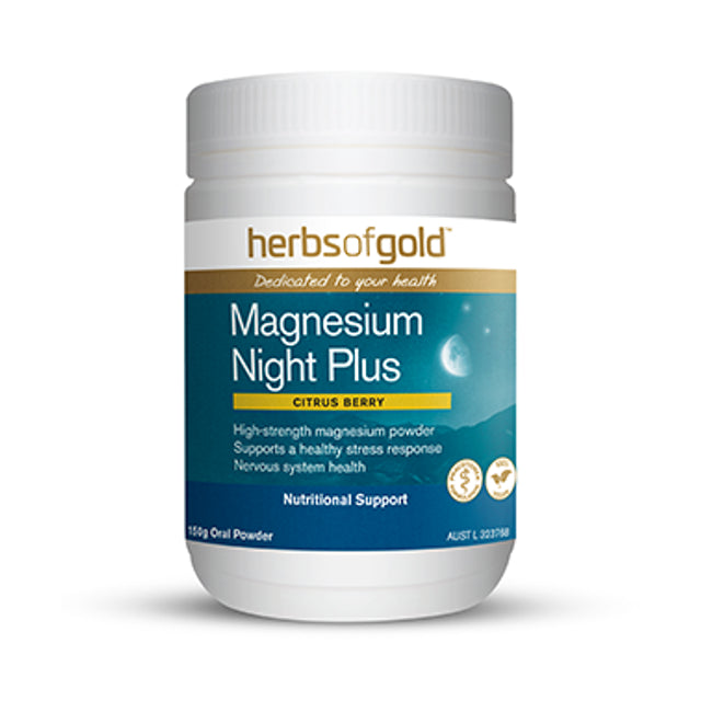 Herbs of Gold Magnesium Night Plus 是一种美味的柑橘浆果味粉末,含有高强度镁以及西番莲和加州罂粟,这些草药传统上在西方草药中用于促进睡眠。