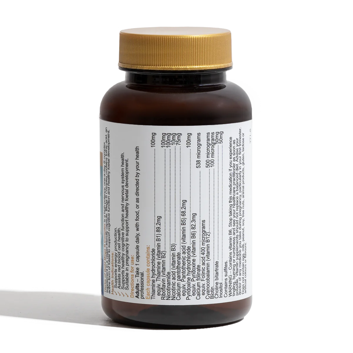 - B 族维生素有助于神经递质的合成,并支持神经系统健康和身体的健康压力反应。
