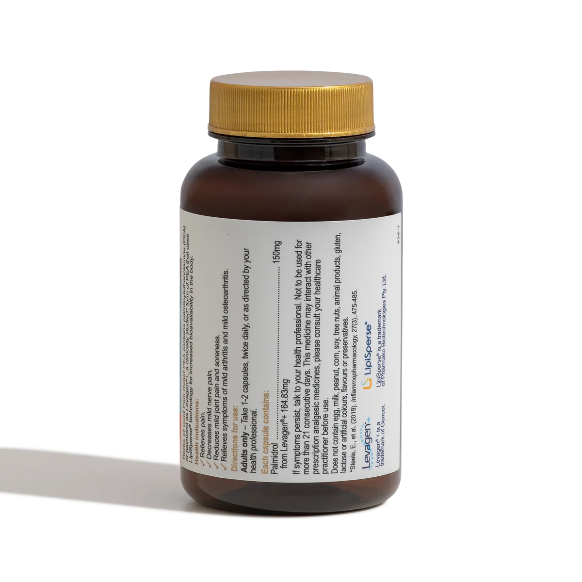 Herbs of Gold Pain Relief PEA 含有 150 毫克棕榈酰乙醇酰胺 (PEA) 或棕榈酰醇,可缓解疼痛。