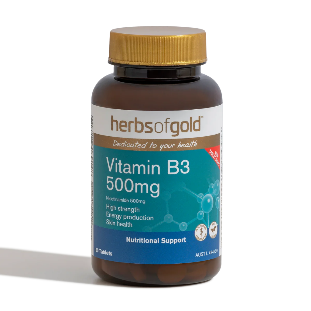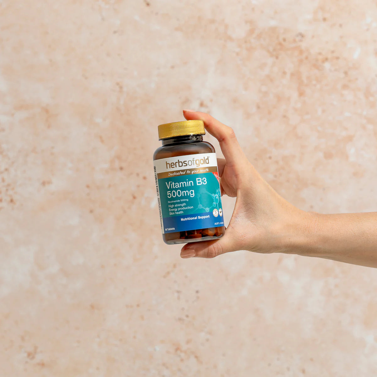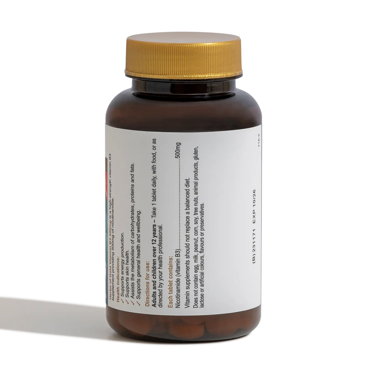 Herbs of Gold 维生素 B3 500mg 是一种高强度维生素 B3 补充剂,可提供 500mg 烟酰胺。