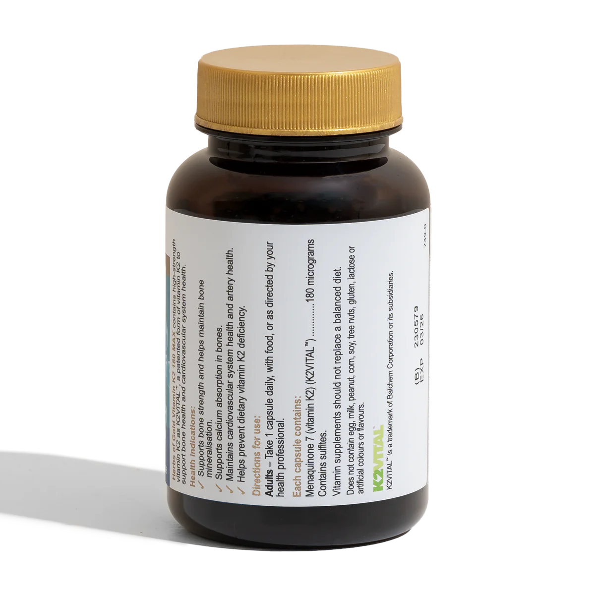 - 维生素 K2 180 MAX 可维持体内维生素 K2 水平,以支持整体健康和福祉。