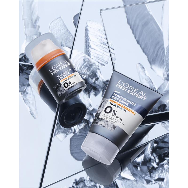 男士敏感肌肤适用镁防御洁面乳,蕴含镁矿物质和透明质酸,保护并滋润肌肤。温和清洁,去除杂质,同时维护肌肤天然的保护屏障功能。