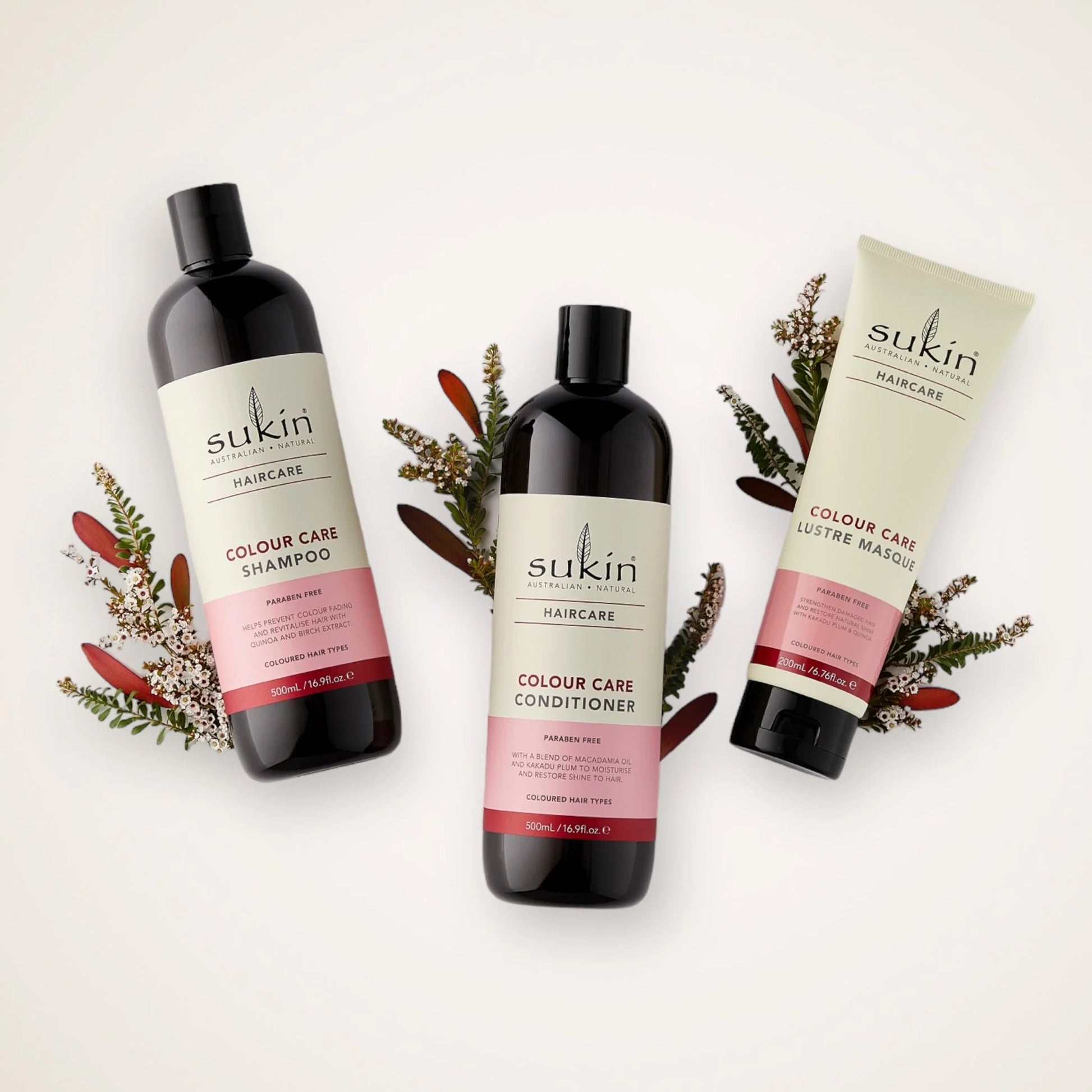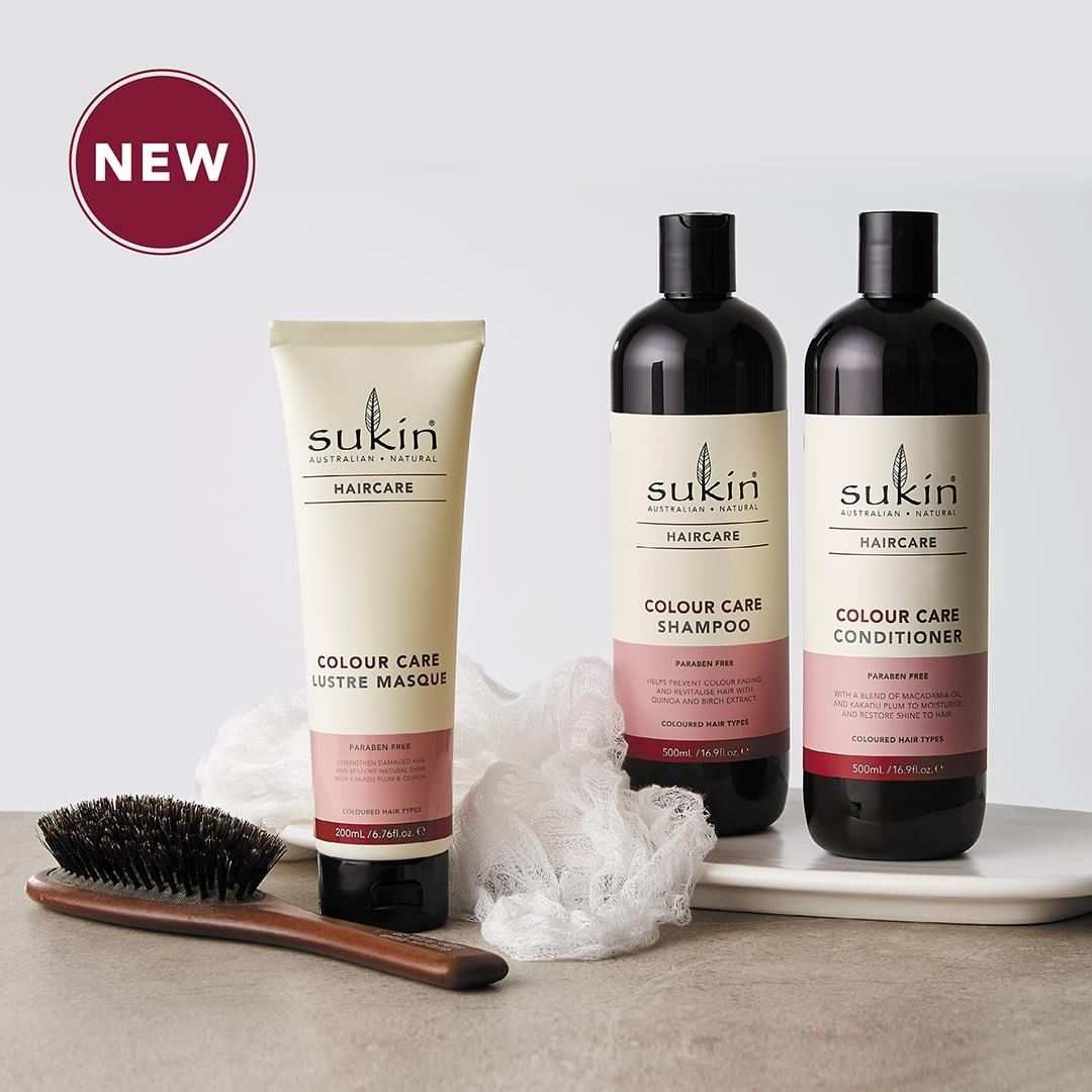 使用 Sukin 护色洗发露后,将 Sukin 护色护发素按摩至头发,重点按摩发梢。彻底冲洗干净。