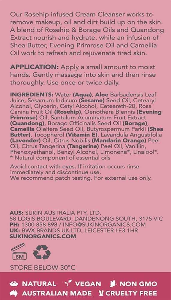 玫瑰果油、澳洲坚果油和山茶油的深层保湿组合,可对抗干燥并清洁皮肤