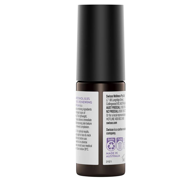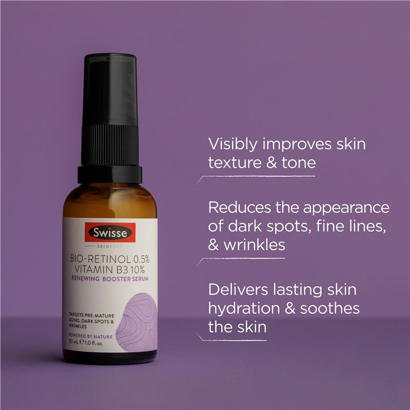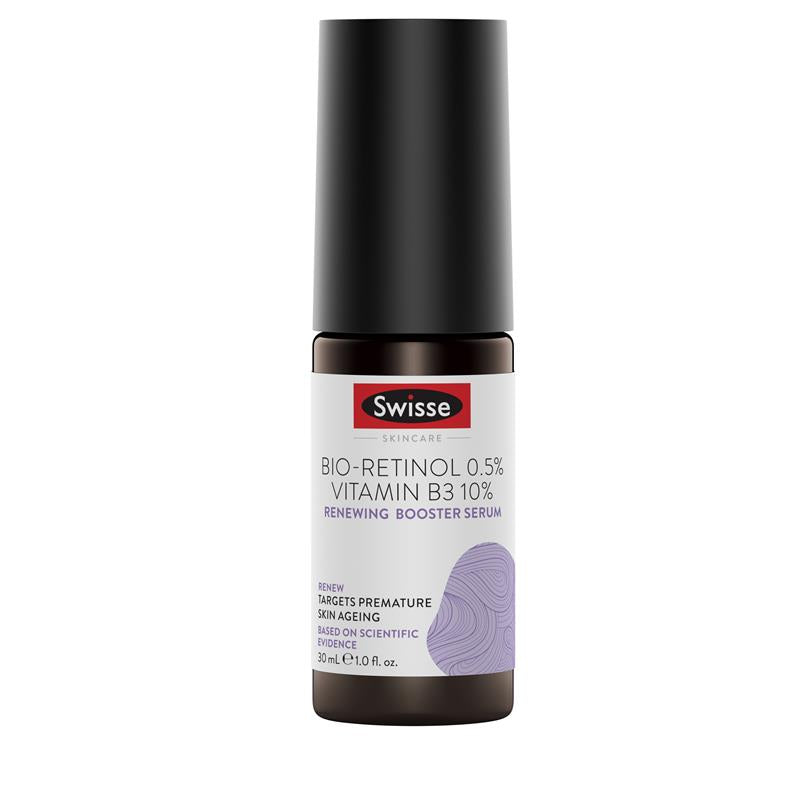 Swisse 生物视黄醇 0.5% 维生素 B3 10% 焕肤精华,令肌肤焕然一新,这得益于其经科学验证的活性成分,能够重塑肌肤纹理,令肌肤更加柔滑。睡前使用,这款焕肤精华能够淡化黑斑、细纹和皱纹,并增强肌肤保湿。