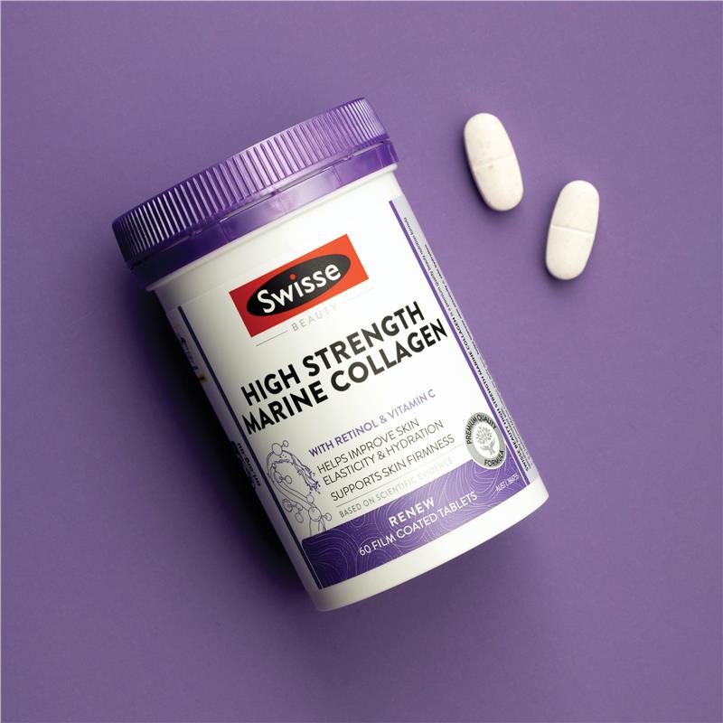 Swisse Beauty 高强度海洋胶原蛋白采用先进配方,专为追求由内而外美丽的人士设计。每日每剂含 5 克水解海洋胶原蛋白,并结合维生素 A、C 和生物素等营养成分。本产品富含维生素 C,可促进肌肤再生和紧致,并富含生物素,可增强头发和指甲的强度。可持续来源的海洋胶原蛋白有助于改善皮肤弹性和保湿度,为您提供全面的美容选择。我们的高强度海洋胶原蛋白片非常适合日常使用,助您每日焕发光彩。适用对象:成人