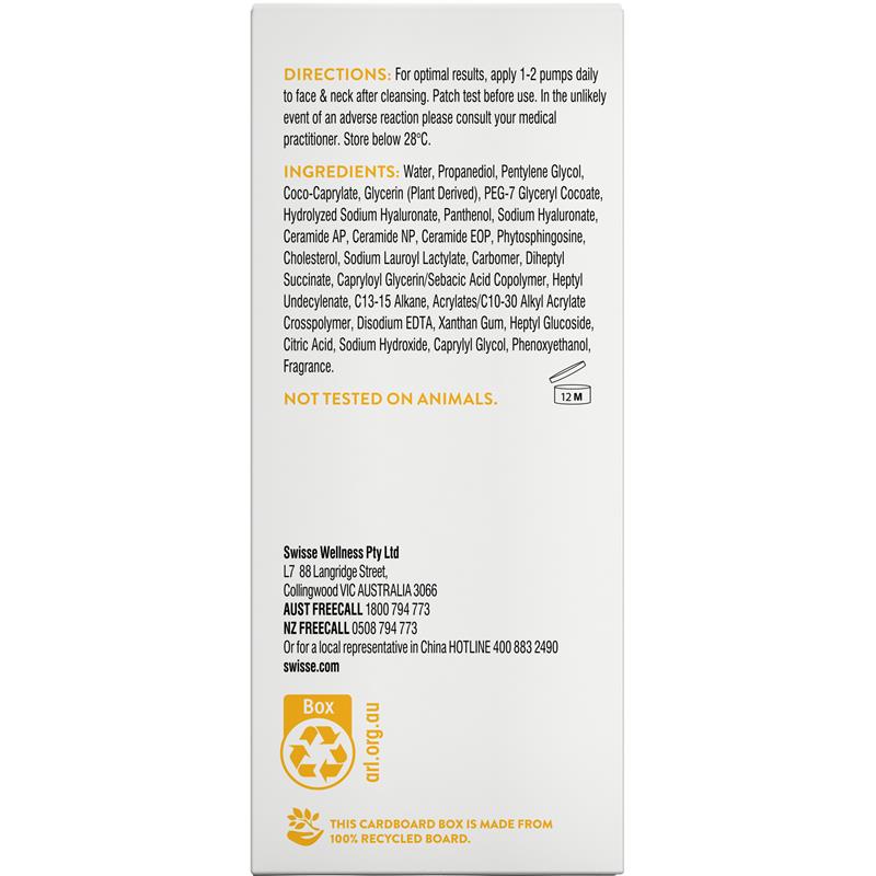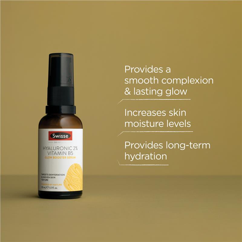 使用 Swisse 护肤透明质酸 2% 维生素 B5 亮泽精华,体验水润肌肤。透明质酸和维生素 B5 的混合成分能够滋润肌肤,神经酰胺则能锁住水分。每天焕发清爽水润的光泽,打造更柔滑的肤色。