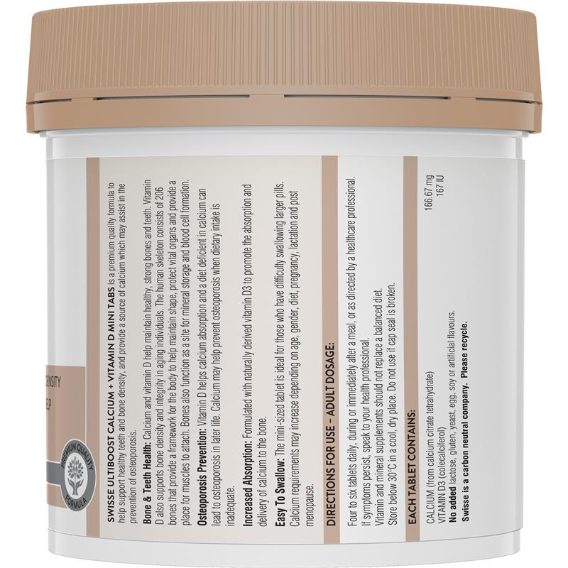 Swisse Ultiboost 钙+维生素 D 迷你片采用优质小片剂配方,非常适合想要补充钙和维生素 D 水平,但又难以服用大片剂和胶囊的人士。它有助于维持健康、坚固的牙齿和骨骼密度,并提供钙质来源,有助于预防饮食摄入不足导致的老年骨质疏松症。它还富含维生素 D3,有助于吸收膳食钙。个人的钙需求量可能会因年龄、性别、饮食、怀孕、哺乳和绝经后等因素而增加,因此确保充足的钙摄入量至关重要。