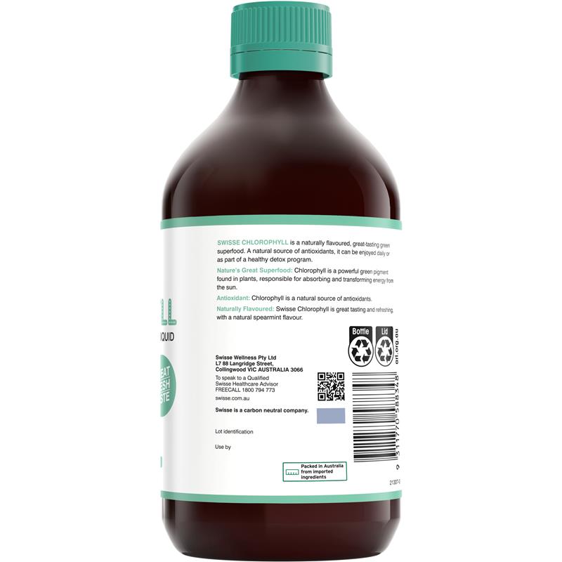 Swisse 叶绿素是每日便捷摄入“大自然最伟大的超级食品”的绝佳方式。这款美味的液体提供天然能量来源,富含抗氧化剂,有助于保护细胞免受自由基损伤。它具有清新的留兰香口味,可作为您早晨日常护理的一部分,或用于支持健康的排毒计划。