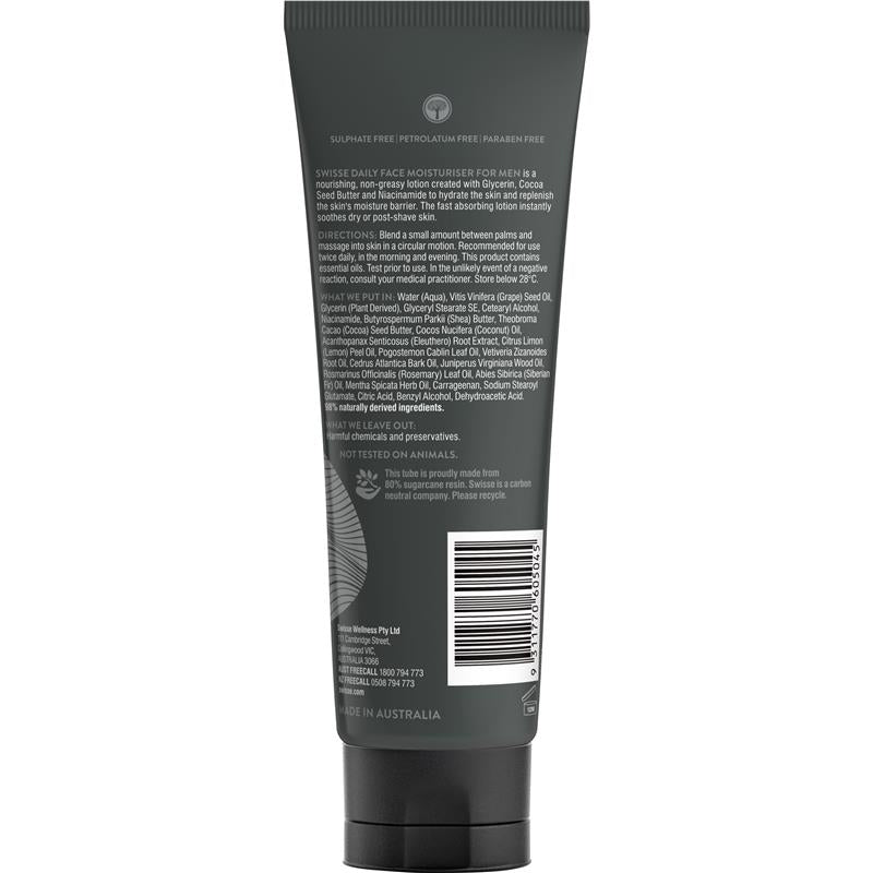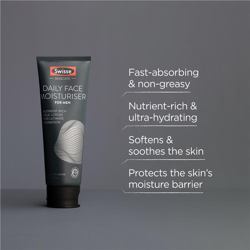 Swisse 男士每日面部保湿霜是一款滋养、快速吸收、不油腻的乳液,由甘油、可可籽油和烟酰胺制成,可滋润皮肤并补充皮肤的水分屏障。