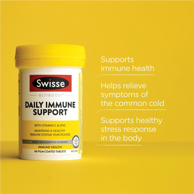 Swisse Ultiboost 每日免疫支持片采用优质配方,全年提供免疫健康支持。富含维生素C,有助于维持健康的免疫功能,并减少普通感冒症状的持续时间和严重程度。