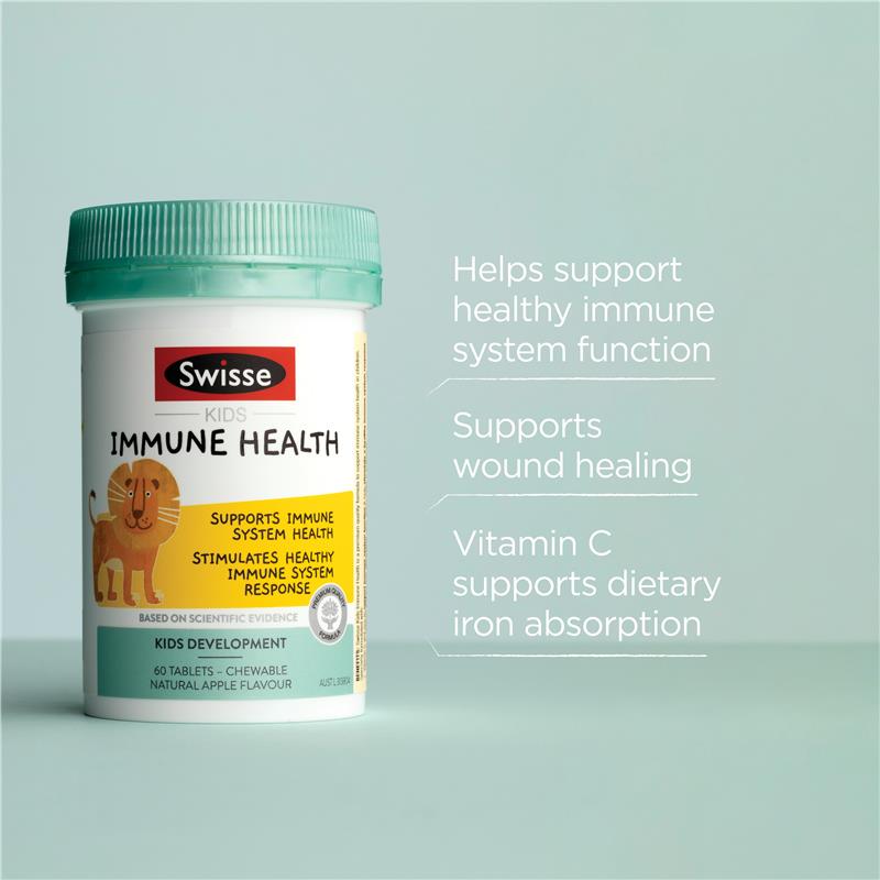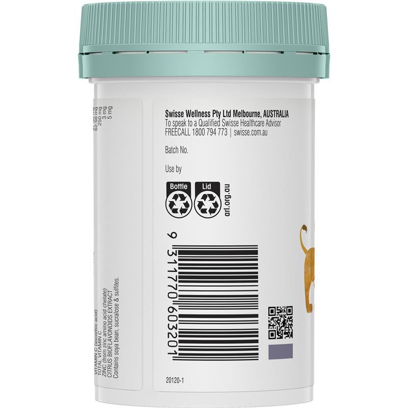 Swisse 儿童免疫健康片富含维生素C和锌,有助于增强免疫系统,促进儿童健康的免疫反应。这款美味的咀嚼片99.9%无糖,不添加任何人工色素。