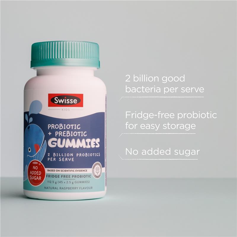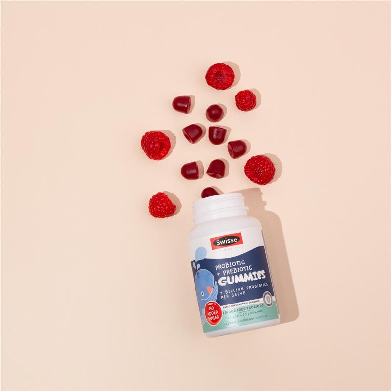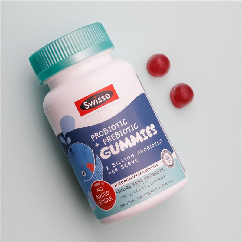 Swisse 儿童益生菌+益生元软糖含有 20 亿菌落形成单位 (CFU) 的益生菌,以及菊粉——一种益生元纤维来源,能够滋养肠道中的有益菌群。这些优质软糖有助于维护您孩子的肠道健康,是挑食儿童的理想选择。本产品提供美味的覆盆子口味,采用天然色素和香精制成,不含人工甜味剂。