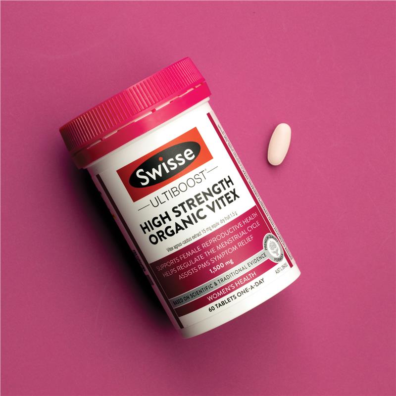 Swisse Ultiboost 高浓度有机圣洁莓可缓解经前症状,例如情绪波动、乳房疼痛和压痛、烦躁和体液潴留。它还有助于调节月经周期,维持健康的荷尔蒙平衡。这款优质配方富含高浓度圣洁莓,传统上在西方草药中用于维护女性生殖健康。