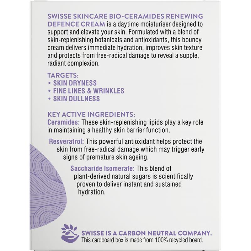 Swisse 生物神经酰胺焕肤防护霜蕴含抗衰老植物复合物,能够丰盈、平滑肌肤,改善肤质,让您一整天都焕发清新活力,倍感年轻。这款三重功效配方富含强效抗氧化剂和神经酰胺,能够深层滋润肌肤,并保护肌肤免受自由基的侵害。
