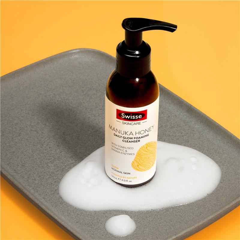 使用 Swisse Skincare 麦卢卡蜂蜜日常焕彩泡沫洁面乳,打造光彩照人的肌肤。本品蕴含麦卢卡蜂蜜、维生素 C 和木瓜酶,清洁滋润肌肤。这款洁面乳适合中性肌肤,能够焕活肌肤,提升肌肤自然光泽,是日常使用的理想之选。
