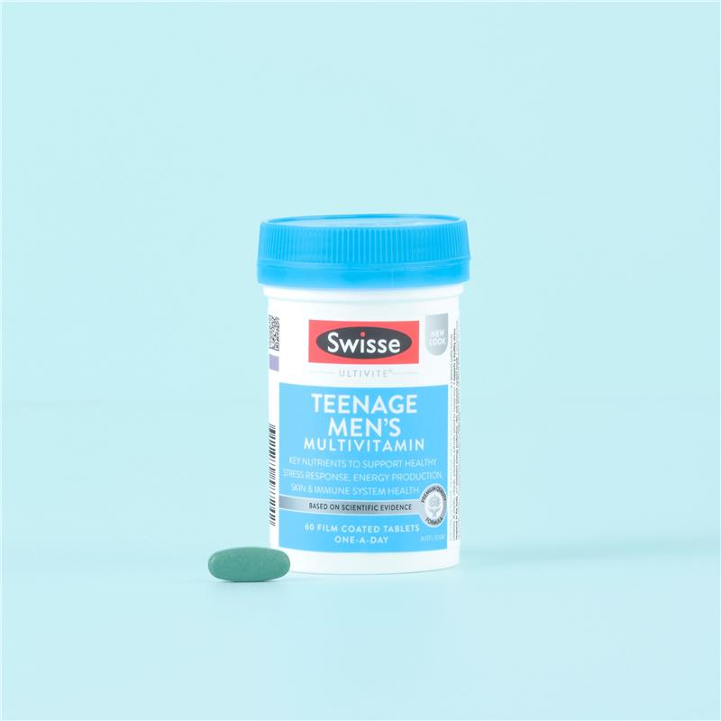 Swisse Ultivite 青少年男士复合维生素,焕发青春活力。专为青少年男孩的活力需求量身定制,支持能量生成、皮肤健康和免疫系统功能。每片富含 B 族维生素和抗氧化剂,是全面健康的基石。非常适合活力四射、忙碌的青少年。