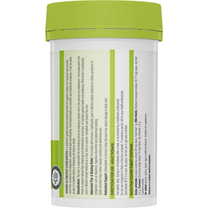 Swisse Ultiboost 肝脏排毒片蕴含多种草本混合物,有助于维护健康的肝功能,缓解消化不良、腹痛和腹胀等症状。本品以科学和传统医学为依据,采用优质配方,富含水飞蓟、朝鲜蓟和姜黄,可作为健康排毒的一部分,或在食用油腻食物或饮品后服用。