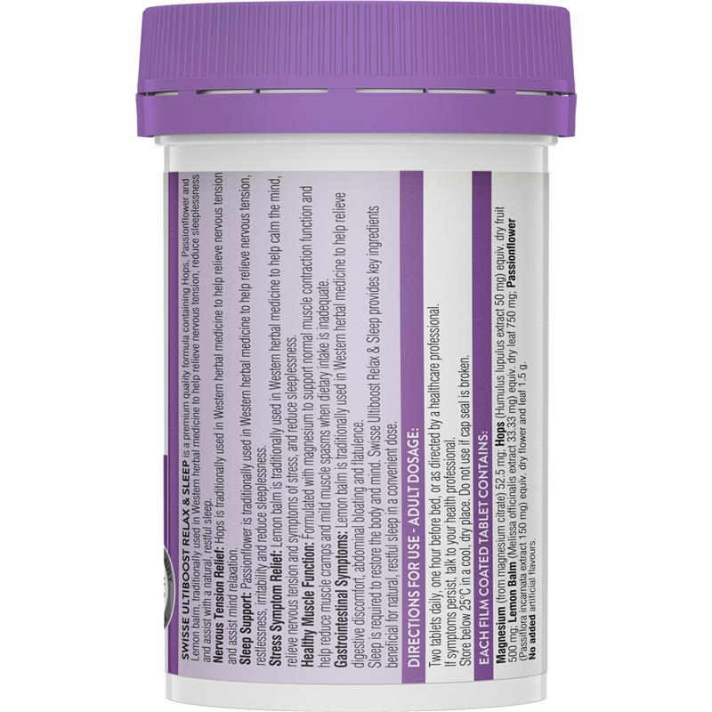 Swisse Ultiboost Relax & Sleep 含有啤酒花、西番莲和柠檬香蜂草,传统上用于西方草药,有助于缓解神经紧张、减少失眠并有助于自然、安宁的睡眠。