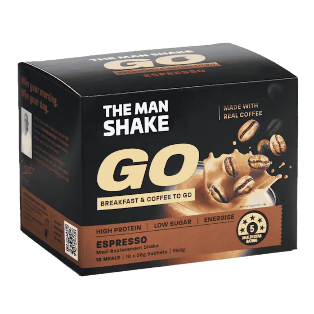 只需每天用 Man Shake(15 份)或 The Man Shake GO!(每盒 10 袋)替换 1 或 2 餐,同时搭配健康零食 - The Man Bar。