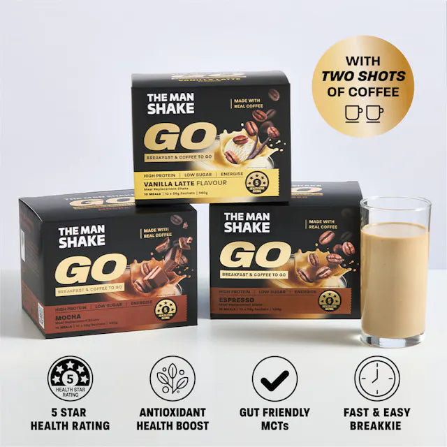 Man Shake 和 Man Shake GO! 均高蛋白、低糖、无麸质,专为健康减肥和维持体重而设计。Man Shake GO! 的独特之处在于: