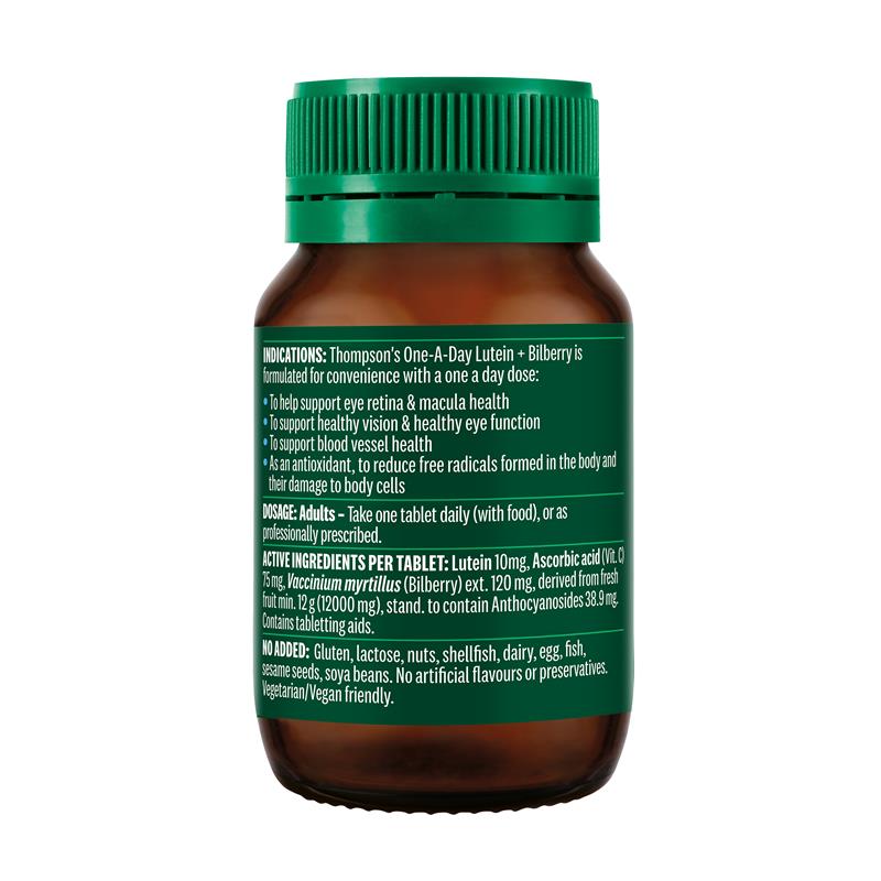 汤普森每日一片叶黄素+越橘有助于维持眼睛视网膜和黄斑健康,同时支持健康的视力。