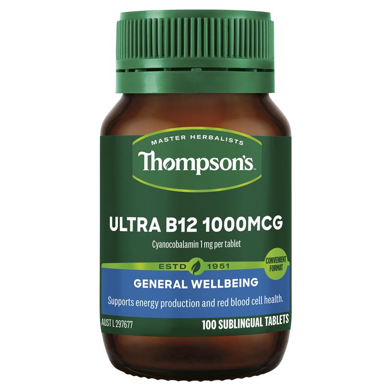 汤普森超级维生素 B12 1000mcg 支持能量产生和红细胞健康。