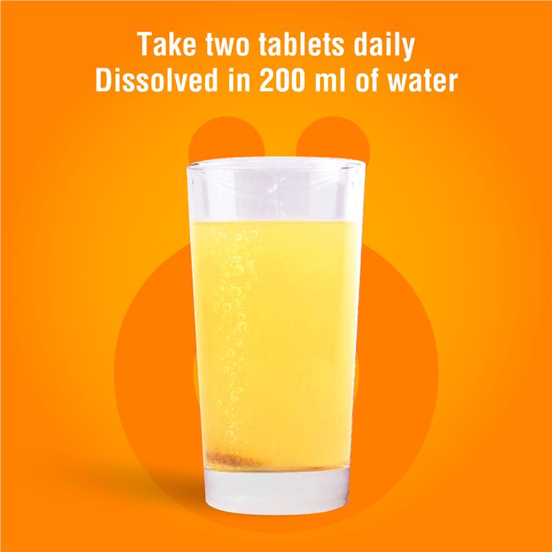 维生素补充剂不应取代均衡饮食。如果症状持续,请咨询您的健康专家。仅限成人使用。请将本品放在儿童不能接触的地方。将管盖紧,存放在阴凉干燥处。储存在25°C以下。如果防篡改密封破损,请勿使用。本品含有三氯蔗糖和糖(葡萄糖)。如果您患有肾病或正在服用心脏或降压药物,请在使用前咨询您的医生或药剂师。请将本品放在儿童不能接触的地方。