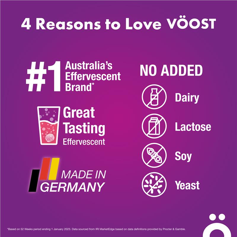 • 当饮食摄入不足时,VÖOST Kids Immunity 有助于促进健康的骨骼发育