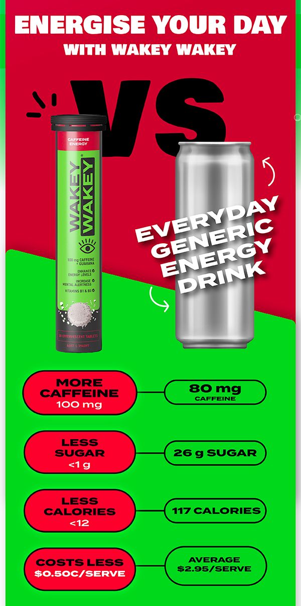 Wakey Wakey 能量泡腾片,含咖啡因 + 瓜拉那。