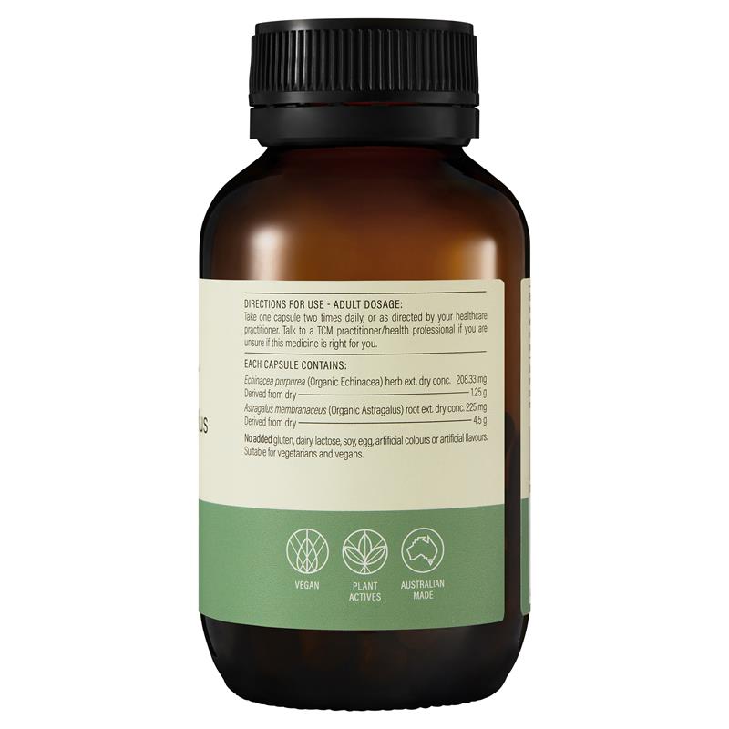 精心研制的紫锥菊和黄芪植物活性混合物。强肺:黄芪在传统中药中用于强健和滋补肺脏。