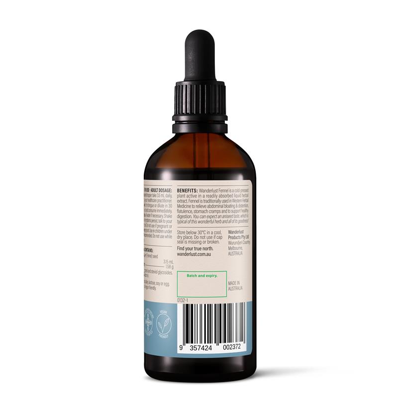 Wanderlust 茴香是一种冷榨植物,富含活性成分,可快速吸收。传统上,它在西方草药中用于缓解腹胀、胀气引起的腹压以及胃痉挛。