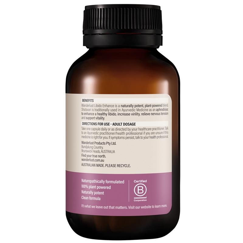 Wanderlust Libido Enhance 是一款天然强效的植物配方。在阿育吠陀医学中,天门冬属植物传统上被用作壮阳药,可增强性欲、提升阳刚之气、缓解神经紧张并增强活力。