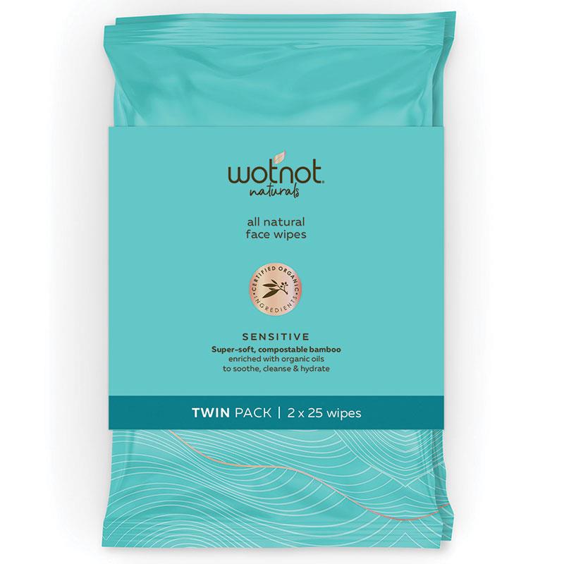 WotNot 天然有机敏感面部湿巾 2x25 包